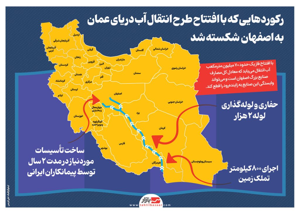 رکوردهایی که با افتتاح طرح انتقال آب دریای عمان به اصفهان شکسته شد