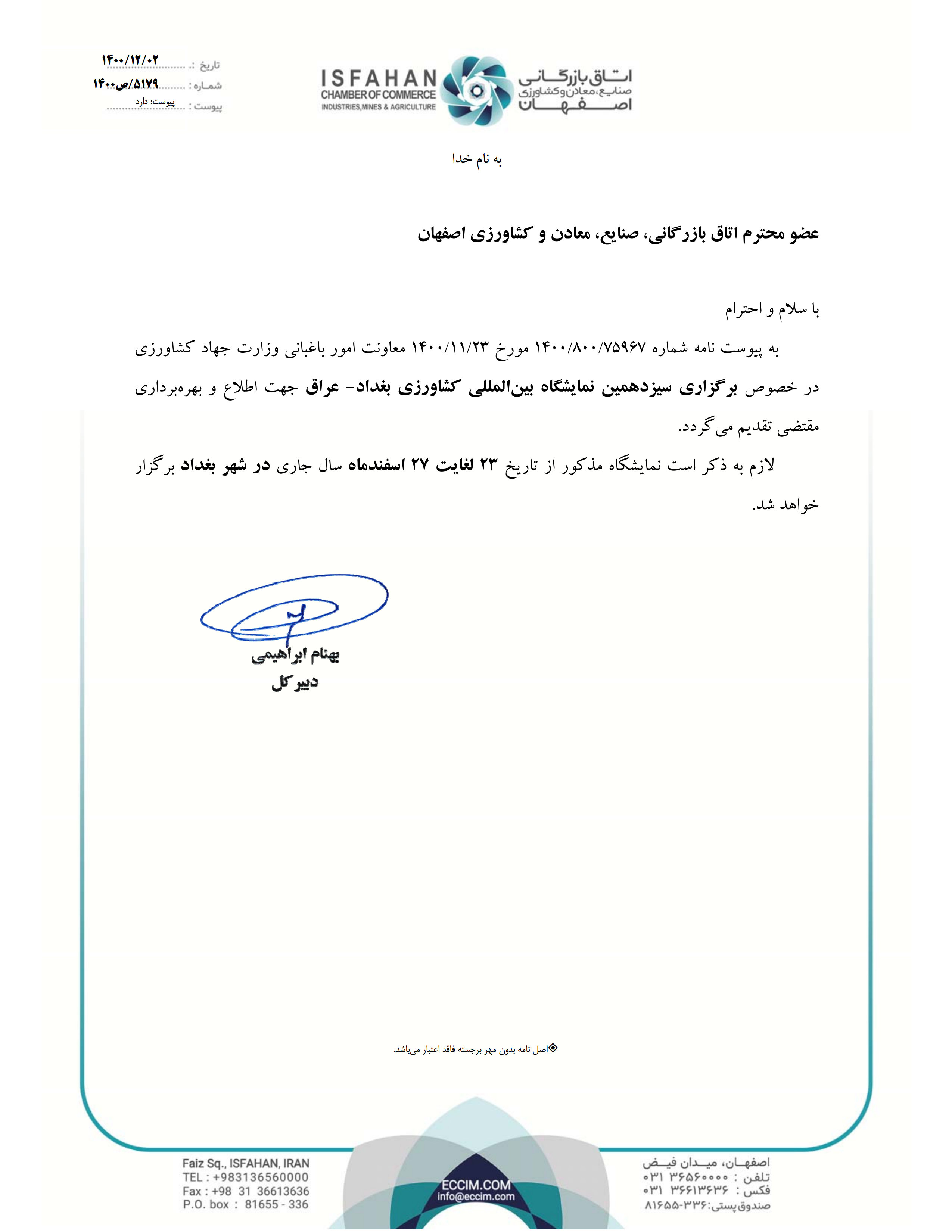 سیزدهمین نمایشگاه بین‌المللی کشاورزی بغداد- عراق