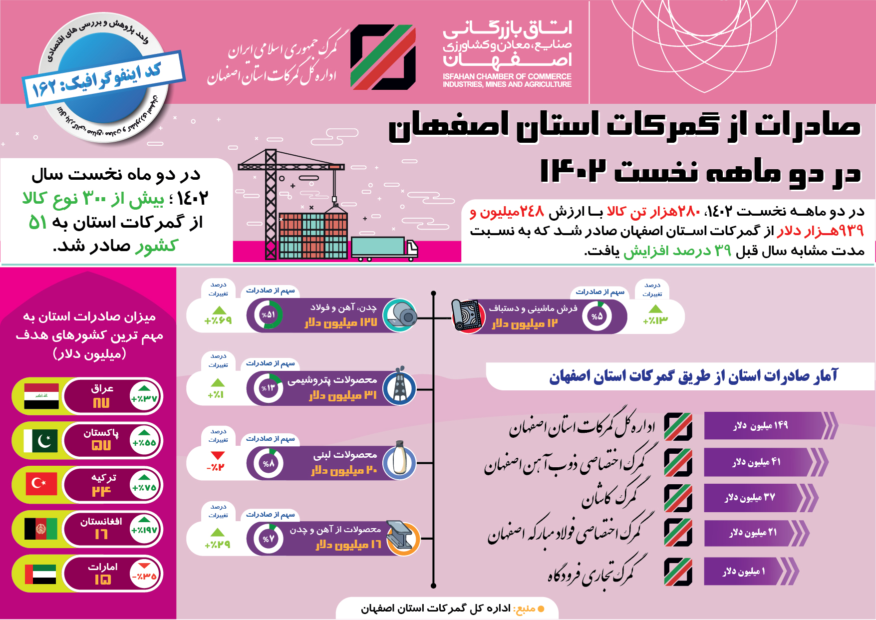 اینفوگرافیک «صادرات از گمرکات استان اصفهان در دو ماهه نخست 1402»